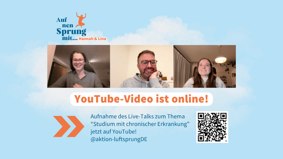 Unser Ziel ist es, die Chancengleichheit junger Menschen mit chronischer Erkrankung, insbesondere im Berufsleben zu verbessern. Die luftsprung-Familie bietet dabei vor allem auch Begleitung in vielen Fragen der Ausbildung, vor allem beim Einstieg in den Beruf. Unsere Mission: Wir verbessern die Lebensumstände chronisch erkrankter junger Menschen.